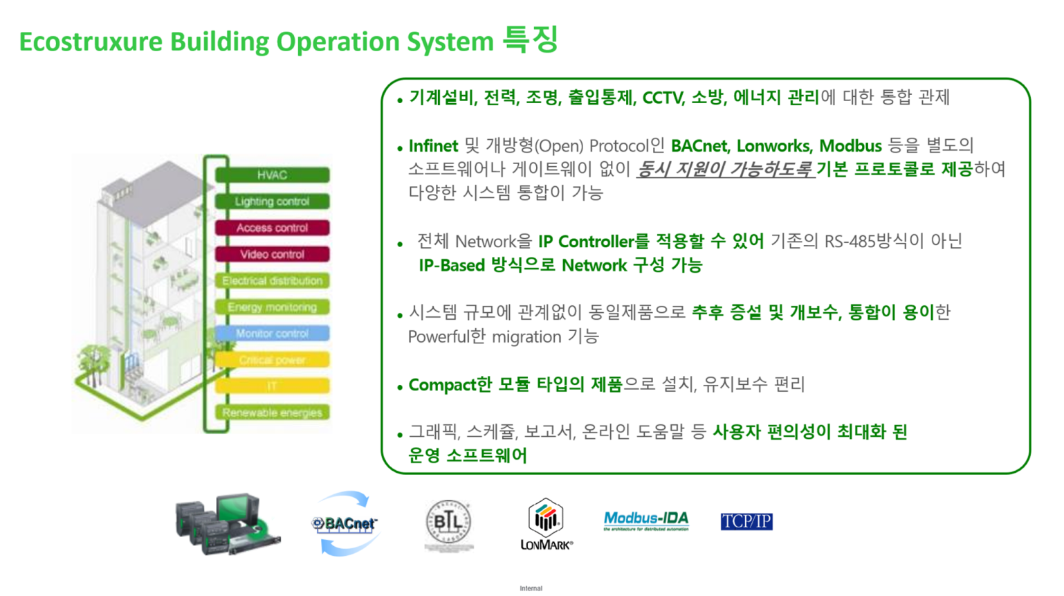 BACnet, Modbus, Lonworks 등 다양한 프로토콜을 동시에 지원하며